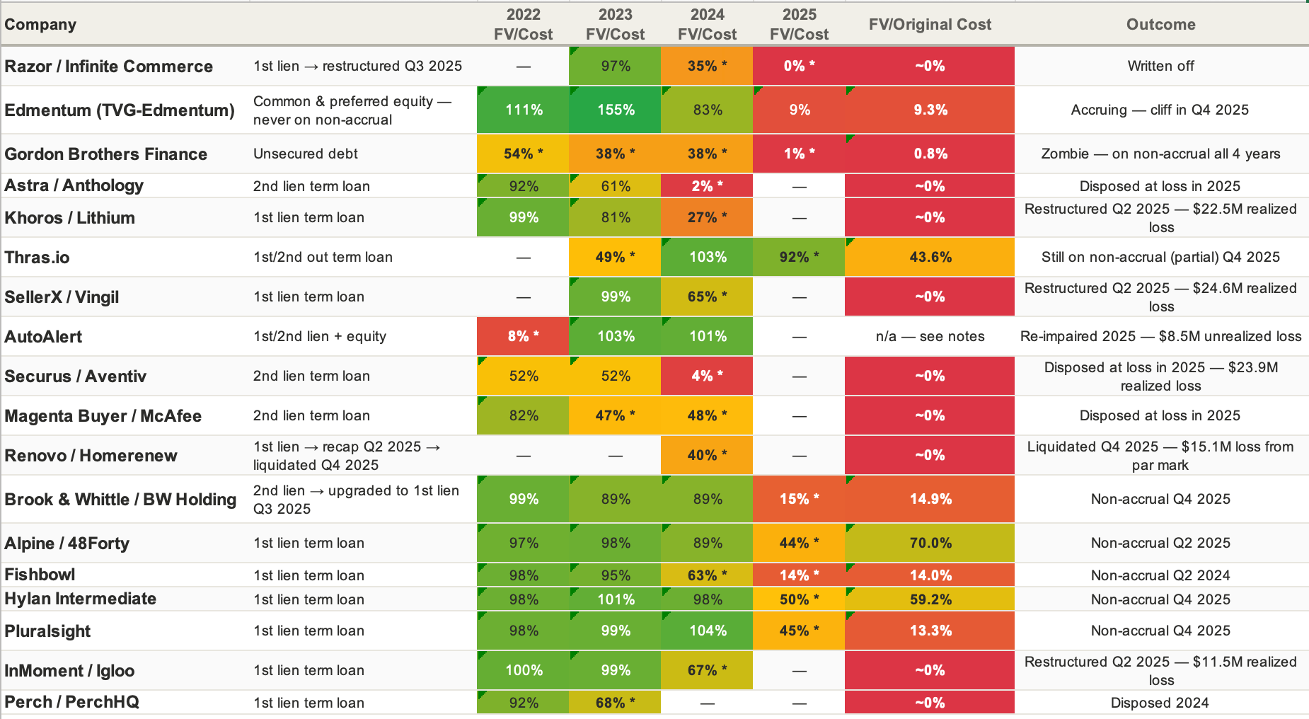The answer is buried in the Schedule of Investments and the accounting mechanics that govern how BDC loan losses actually flow through the books (I hate GAAP accounting with a passion, but what’s a gal to do?)