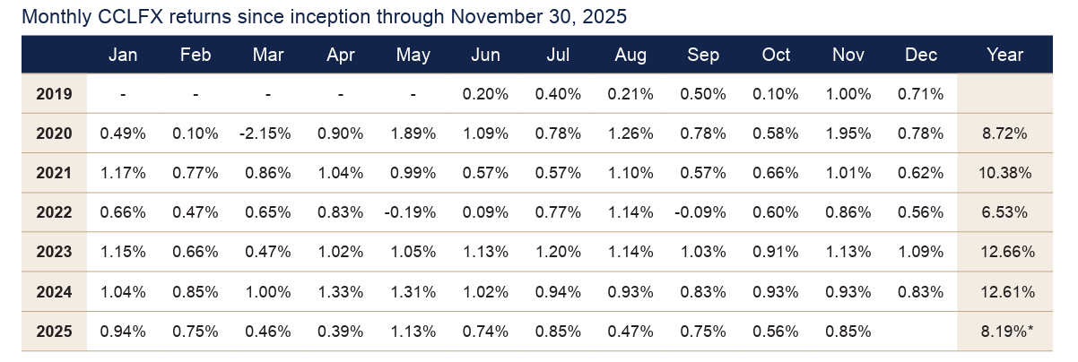 The Cliffwater Corporate Lending Fund (CCLFX) is a closed-end management investment company structured as an interval fund. And it’s big. $31.5B of net assets as of 9/30/25.