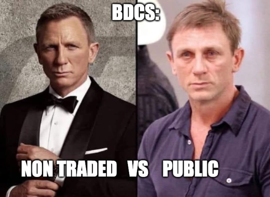 Both funds were birthed by Goldman Sachs. The older one is the publicly traded Goldman Sachs BDC (GSBD). The other, its non-traded sibling, is Goldman Sachs Private Credit Corp.