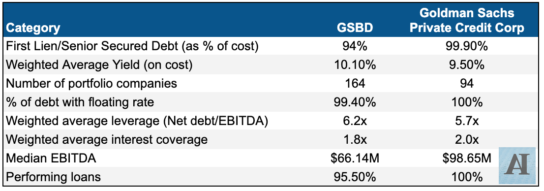 On the surface, they look similar, but look closer at the table above. GSBDās borrowers generally have lower EBITDA, higher leverage, and weaker interest coverage ratios.
