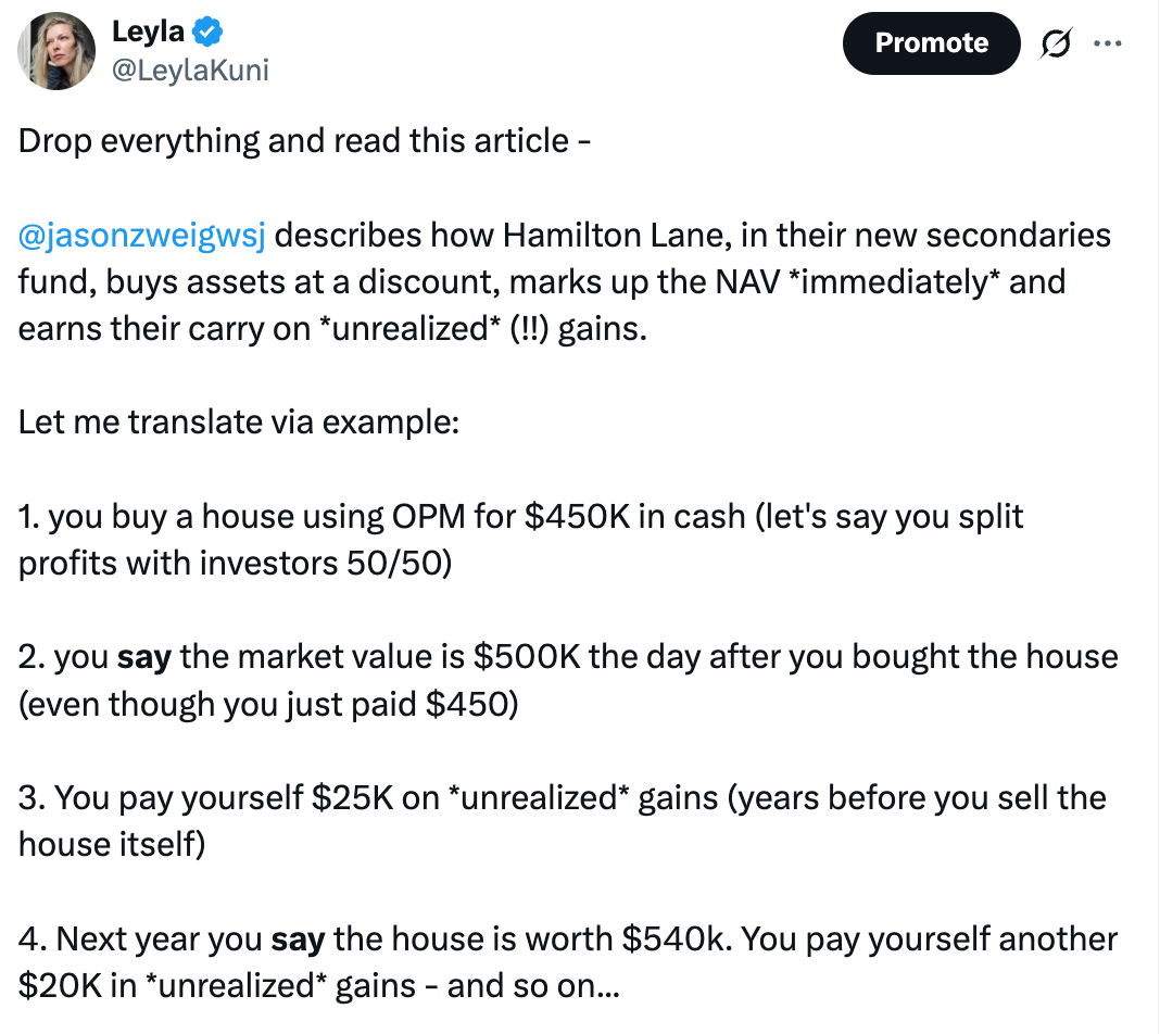 Back to Zweigās point: Hamilton Lane earns performance fees on unrealized gains.