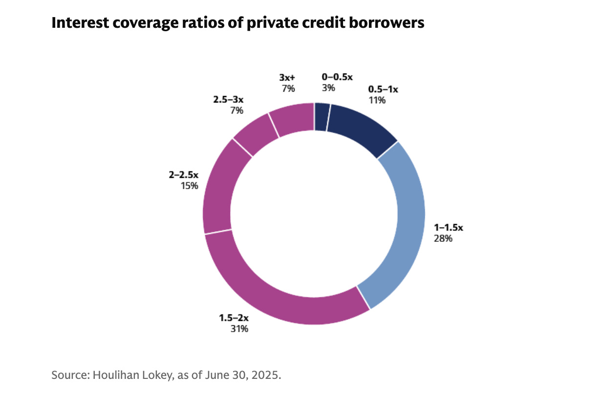 ❗️Roughly 14% of private credit borrowers are not generating enough EBITDA to cover interest, and this is where risk is concentrating.