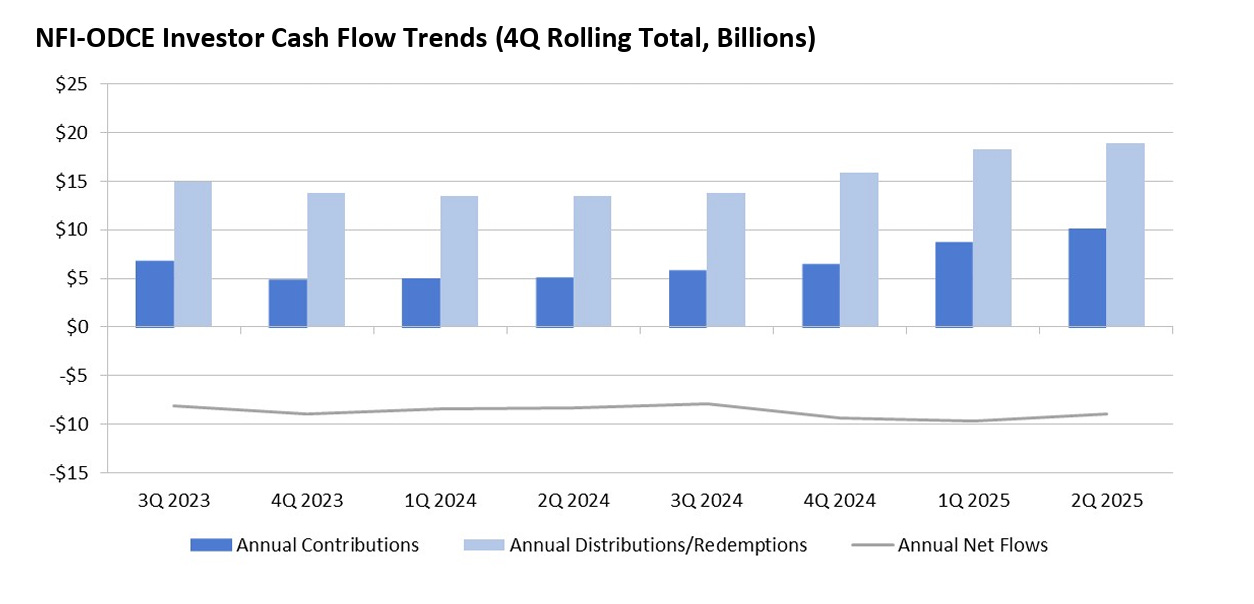 Net investor cash flows remain negative: -$1.7 billion in Q2 2025, roughly flat quarter-over-quarter.