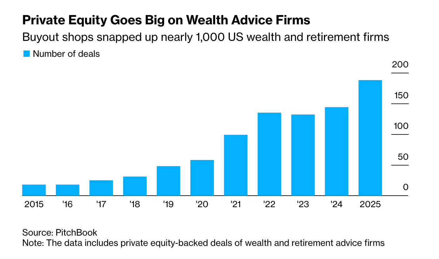 Bloomberg reported this week that PE firms have acquired more than 900 independent financial advisory firms over the past decade: