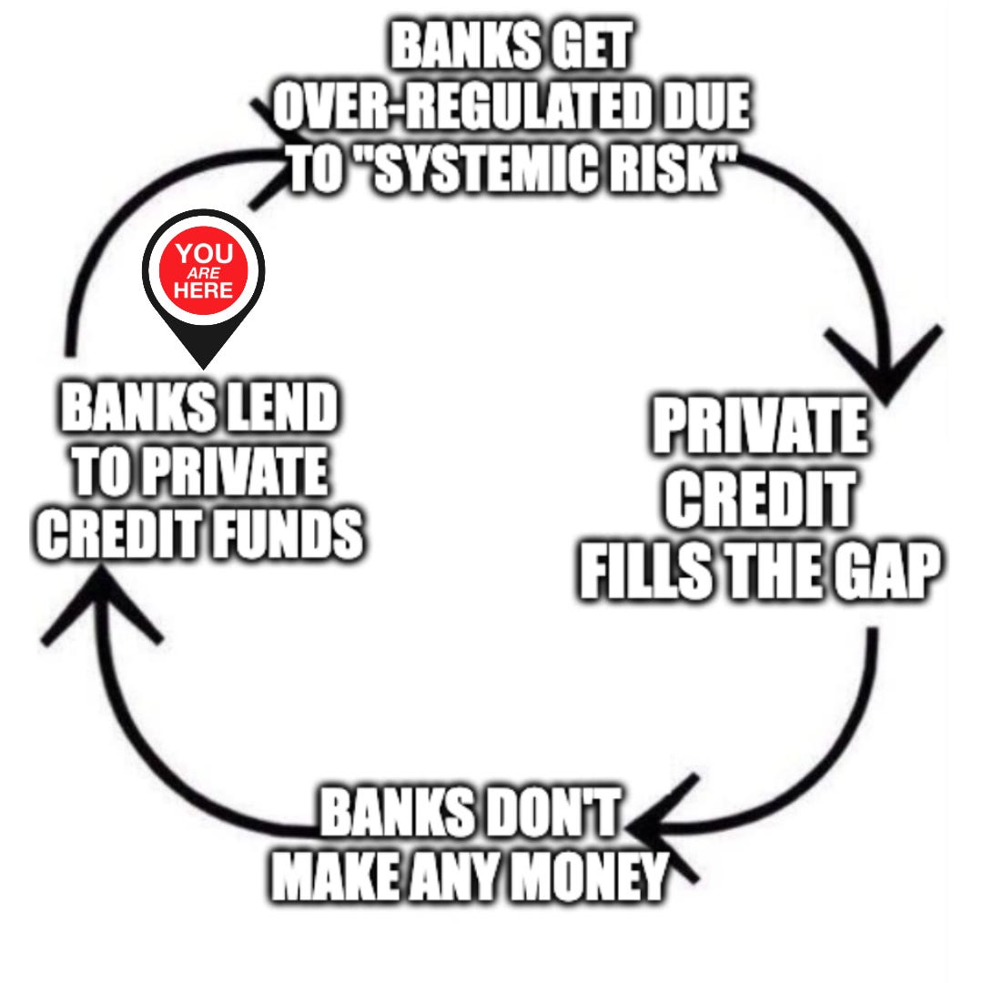 Fintech (e.g. Sofi) lends to consumer -> not on their balance sheet -> BlueOwl -> creates funds and sells equity tranche to Fintech (e.g. Yieldstreet)