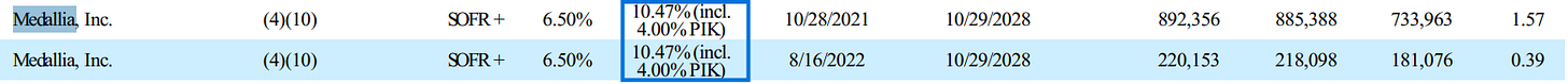 We do know the loans had a PIK component. The screenshot below is from BCRED’s 10-Q (as of 9/30/25):