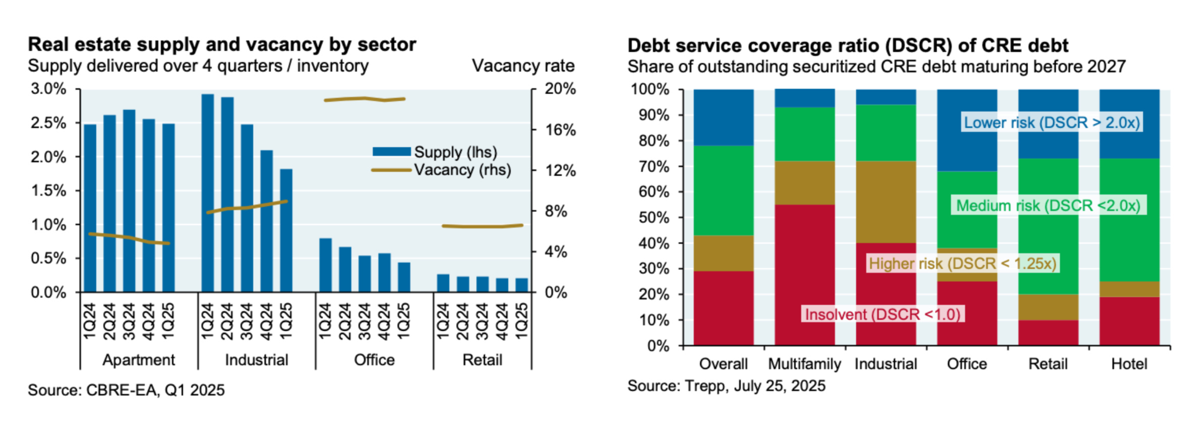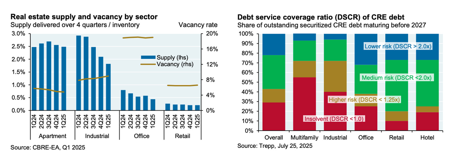 About 55% of multifamily loans in securitized pools have a DSCR < 1.0. This is bad. This means the underlying property is not generating enough cash flow to service its debt. Even office, the asset class that got decimated over the past few years, is looking to be in better shape.
