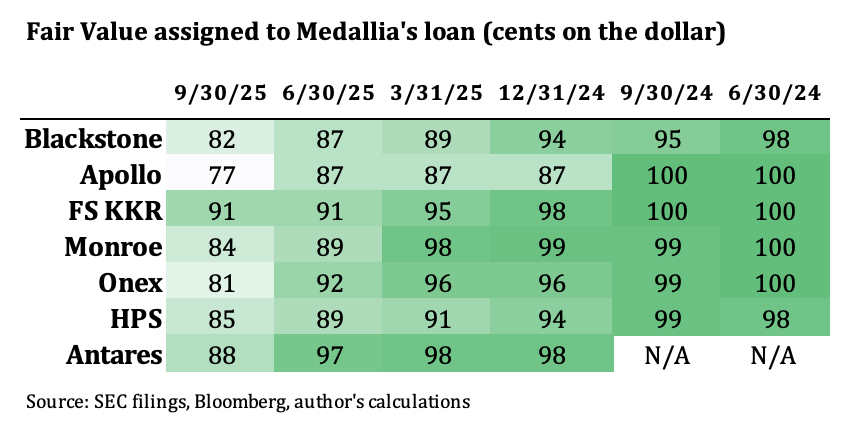 For instance, marks on the same Medallia loan as of September 30, 2025: