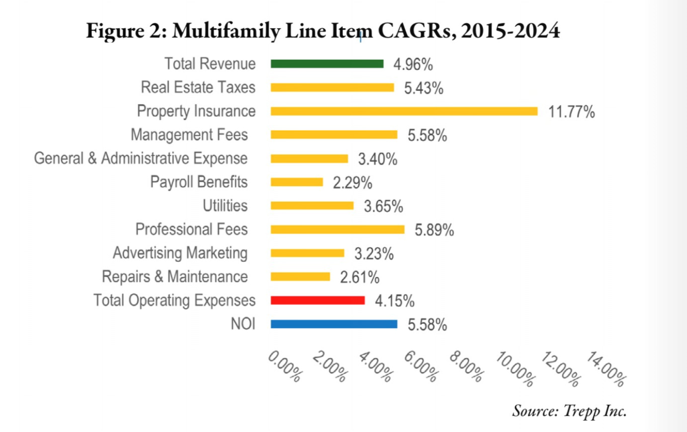Even with healthy NOI growth, OpEx is compounding at 4.15%, well above the ~2% assumption baked into many proformas.